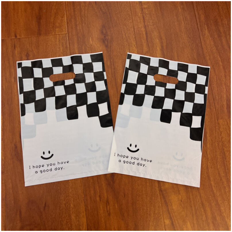 PE vai 100% bioloģiski noārdāmi iepirkšanās maisiņi komposta veikala ar izgrieztu rokturi soma ar pielāgotu logotipu